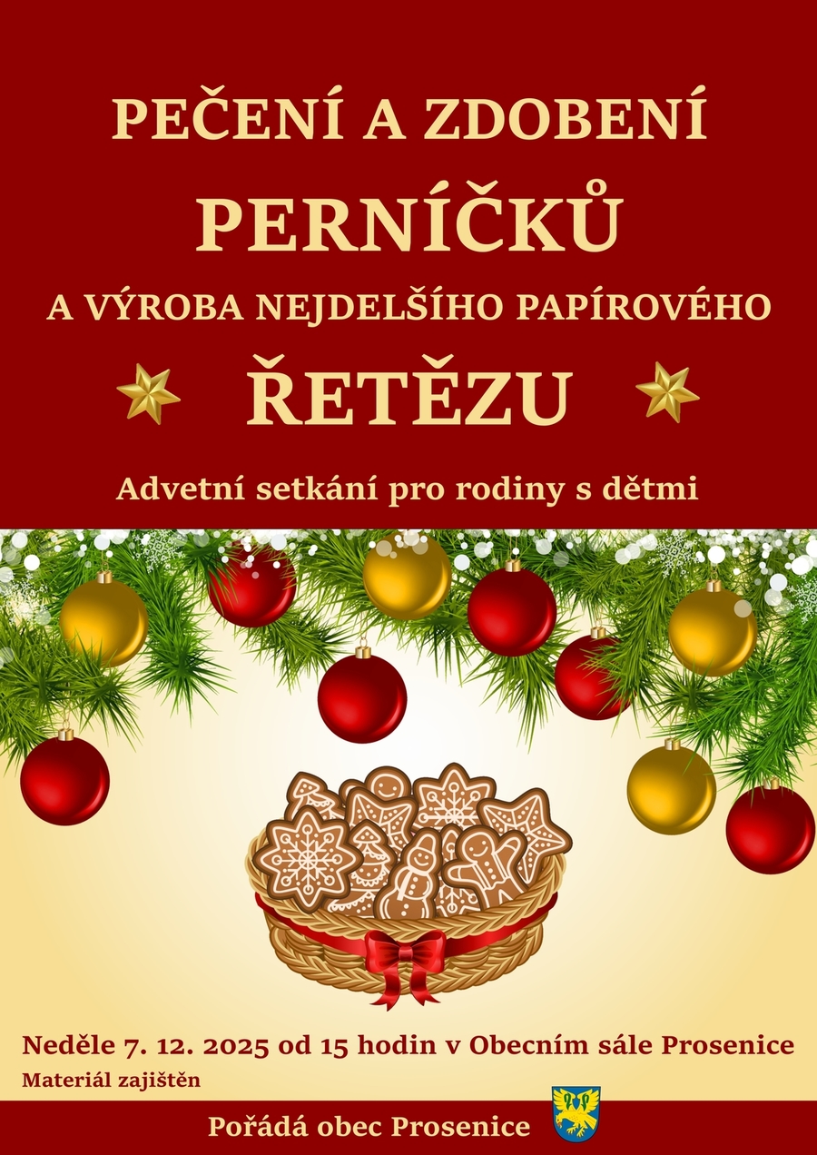 Obecní sál provoníme perníčky 7. 12. 2025 od 15 hodin.