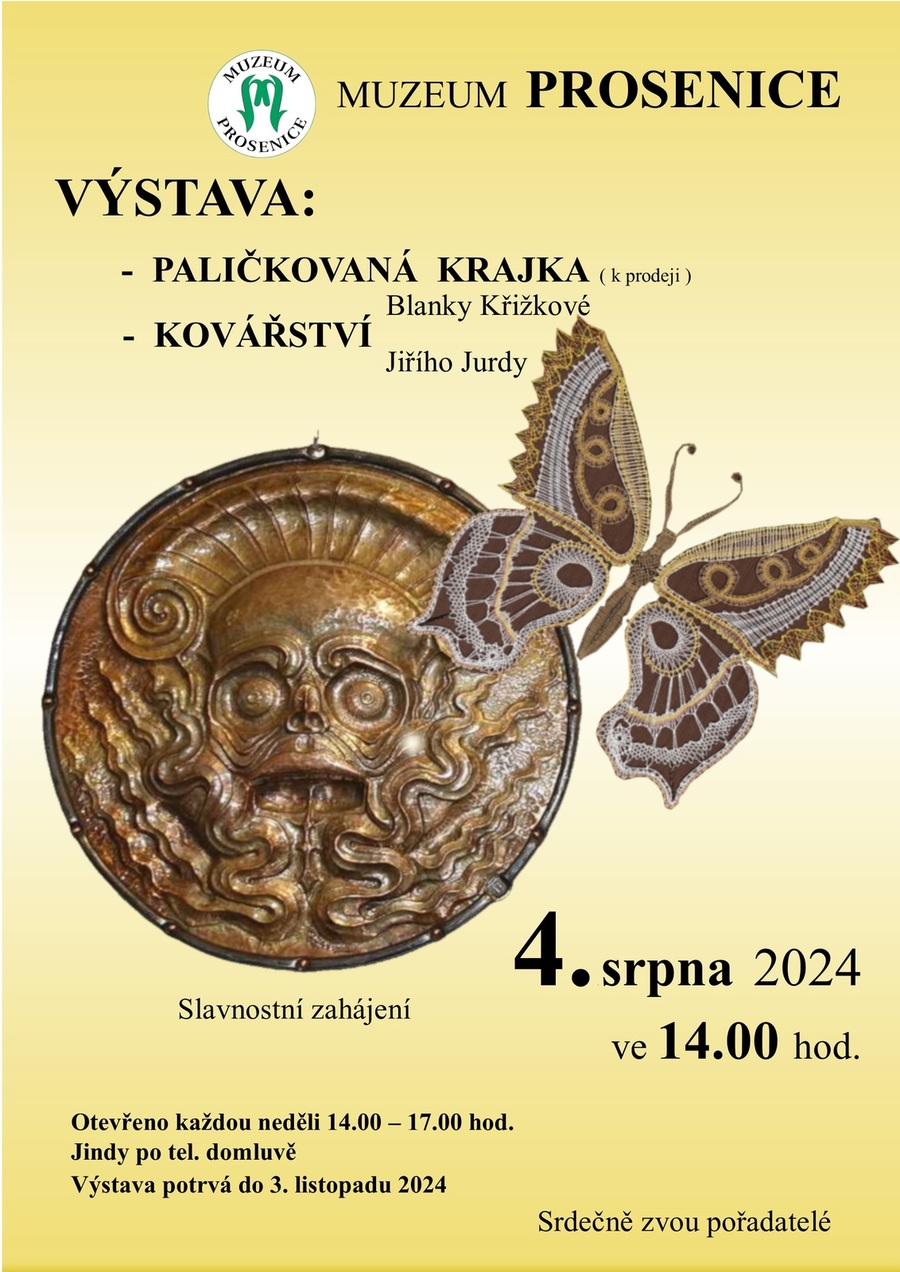 Muzeum Prosenice srdečně zve na prodejní výstavu PALIČKOVANÁ KRAJKA Blanky Křižkové a KOVÁŘSTVÍ Jiřího Jurdy.